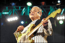 얼마 전 열린 2006 골든디스크 시상식에서 공로상이 신중현(사진)에게 돌아갔습니다. 신중현은 국내 최초로 록 음악 밴드(보컬·기타·베이스·드럼) 개념을 도입하고 기타연주의 지평을 연 인물로 칭송되고 있습니다.
